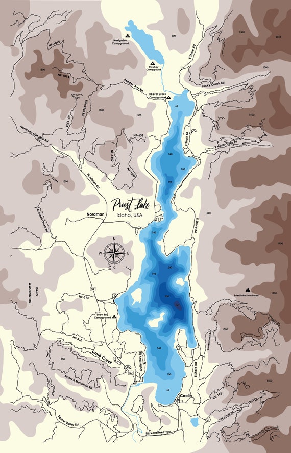 Digital File PDF SVG Priest Lake Idaho Mountain Lake Map Etsy